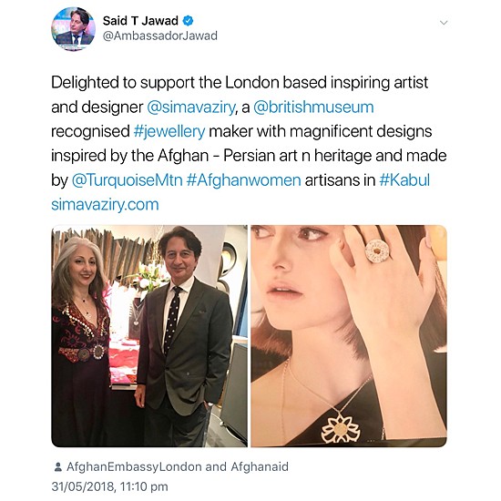 Hosted at the Oxo Tower, where Sima’s shop is located, guests including His Excellency Said T. Jawad, the Ambassador of Afghanistan to the United Kingdom, were invited to view the collection and meet the designer as well as representatives of the charity.