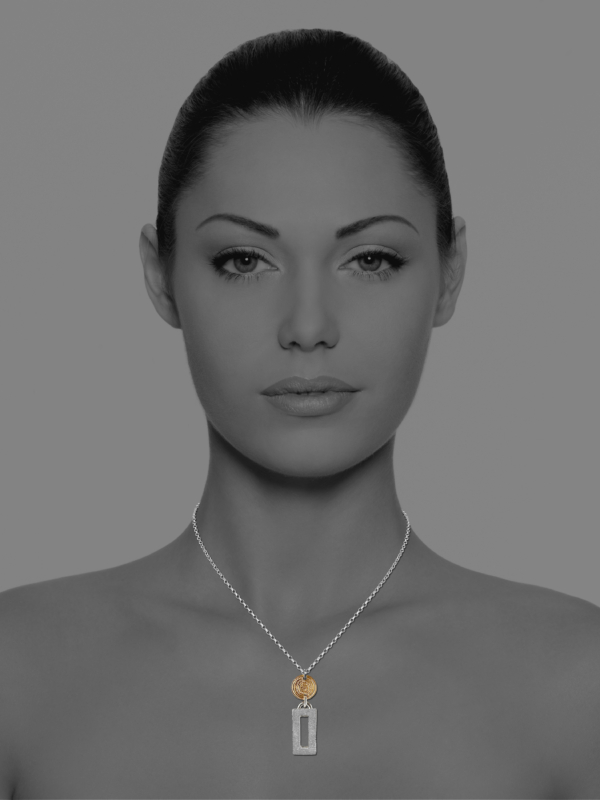 This stylish pendent features a coin with a calligraphic impression of the poetry of Rumi, a Persian poet widely admired in the rest of the world.