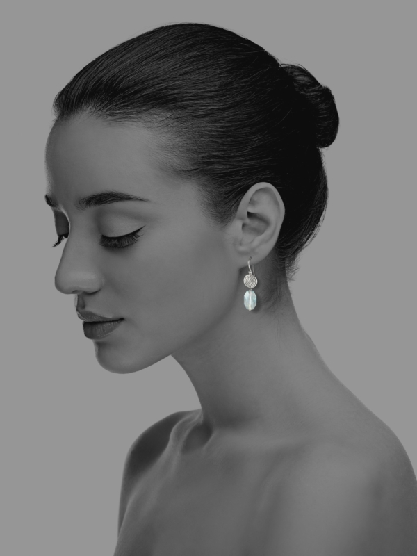 These earrings feature a coin with a calligraphic impression of the poetry of Rumi, a Persian poet widely admired in the rest of the world. They complement the rest of the Hope range.