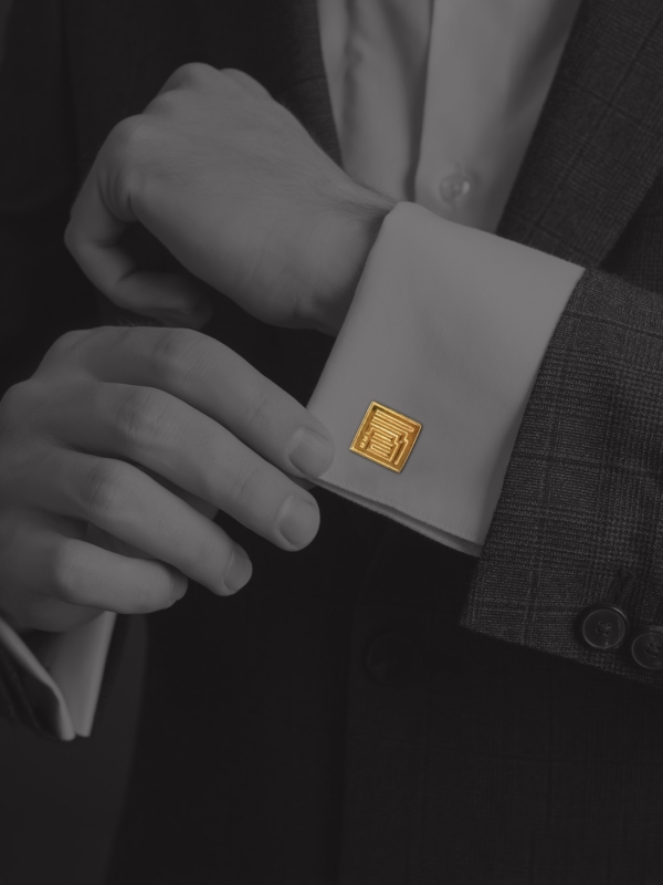 These simple and elegant cufflinks are inscribed with kuffic Arabic calligraphy which reads: “The Journey.”