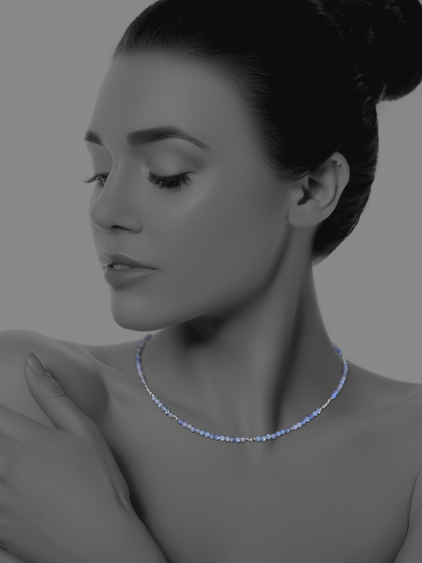 The design of this delicate necklace was inspired by the captivating desert night sky where endless constellations of stars and planets dazzle with lights and colours. Featuring selected iolite beads.