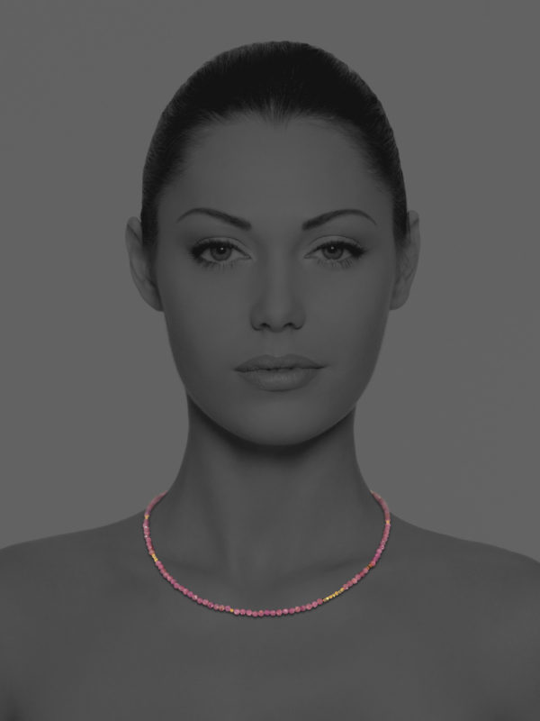 The design of this delicate necklace was inspired by the captivating desert night sky where endless constellations of stars and planets dazzle with lights and colours. Featuring selected pink tourmaline beads.