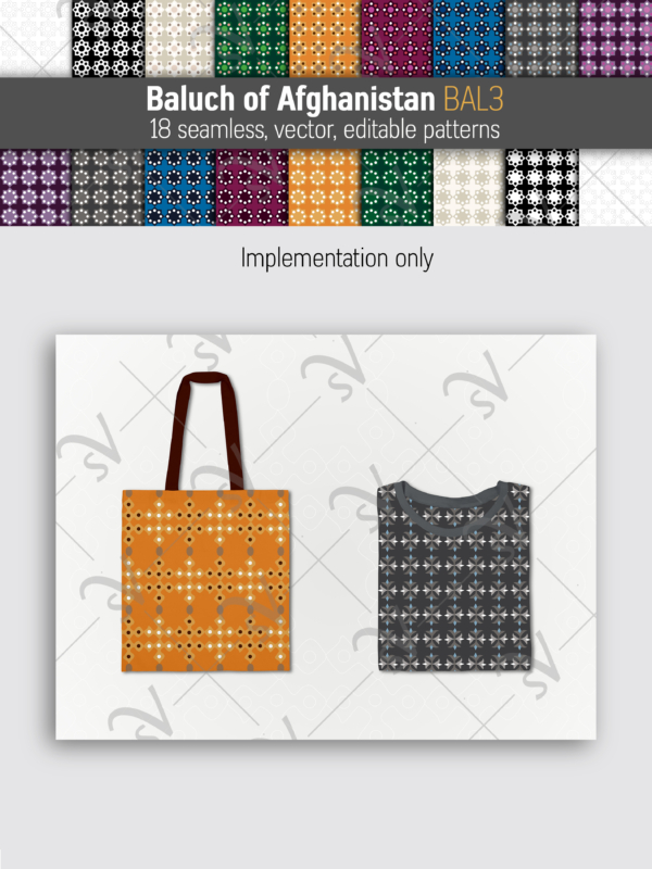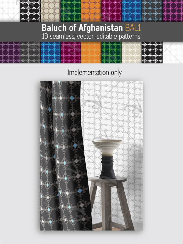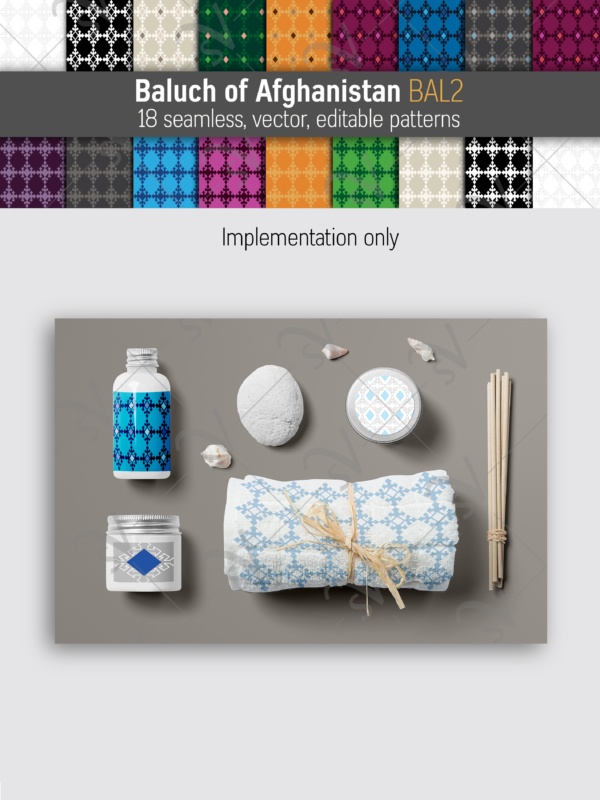 BALUCH OF AFGHANISTAN – BUNDLE OF 90 SEAMLESS, TILEABLE, EDITABLE PATTERN VECTOR FILES